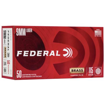 Federal Champion Training Handgun Ammunition 9mm Luger 115 gr FMJ 1125 fps 50/ct