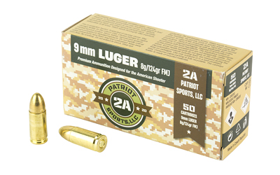 STV Technology, Patriot Sport's Ammo, 9MM, 124 Grain, Full Metal Jacket, 50 Rounds