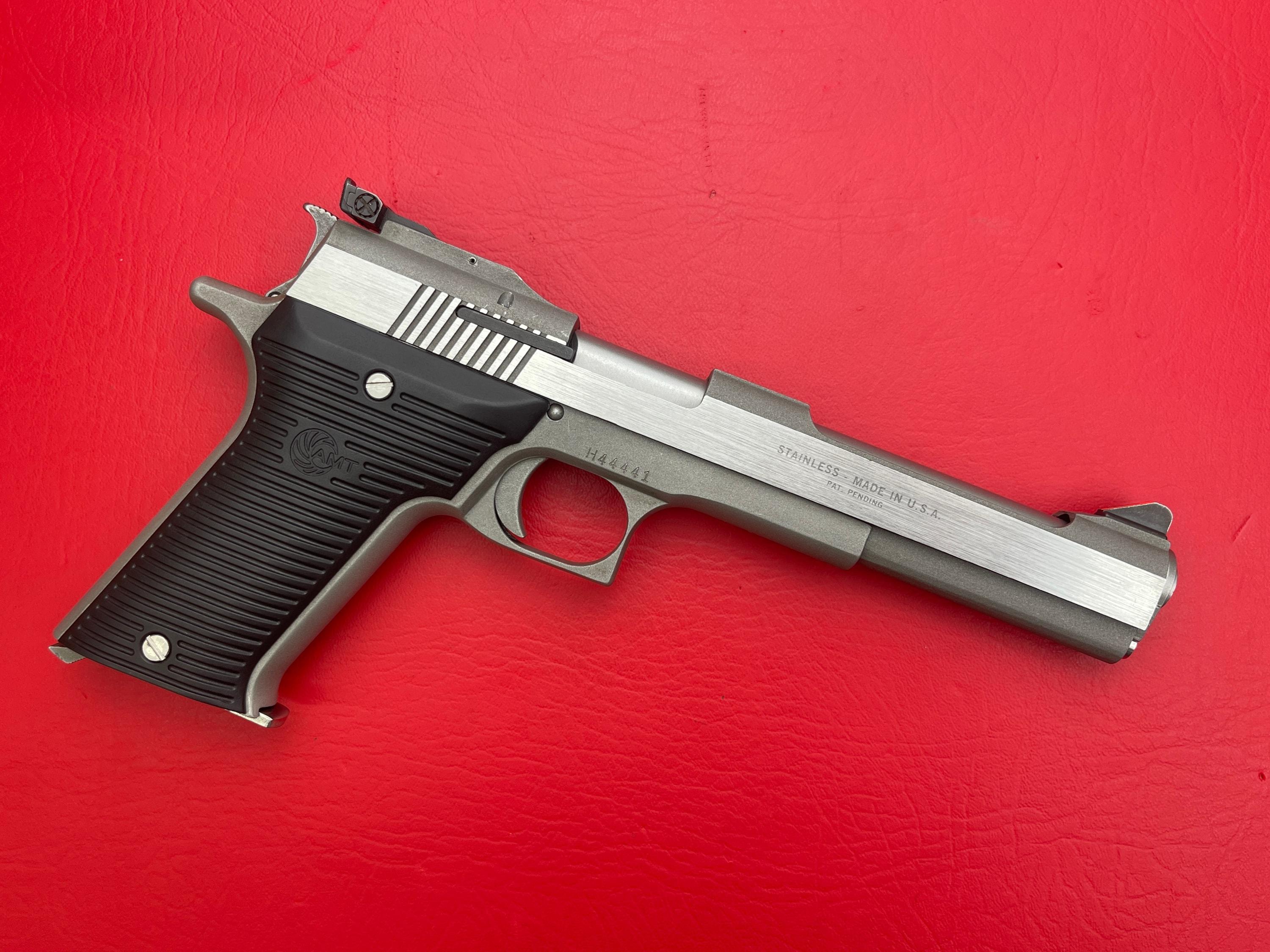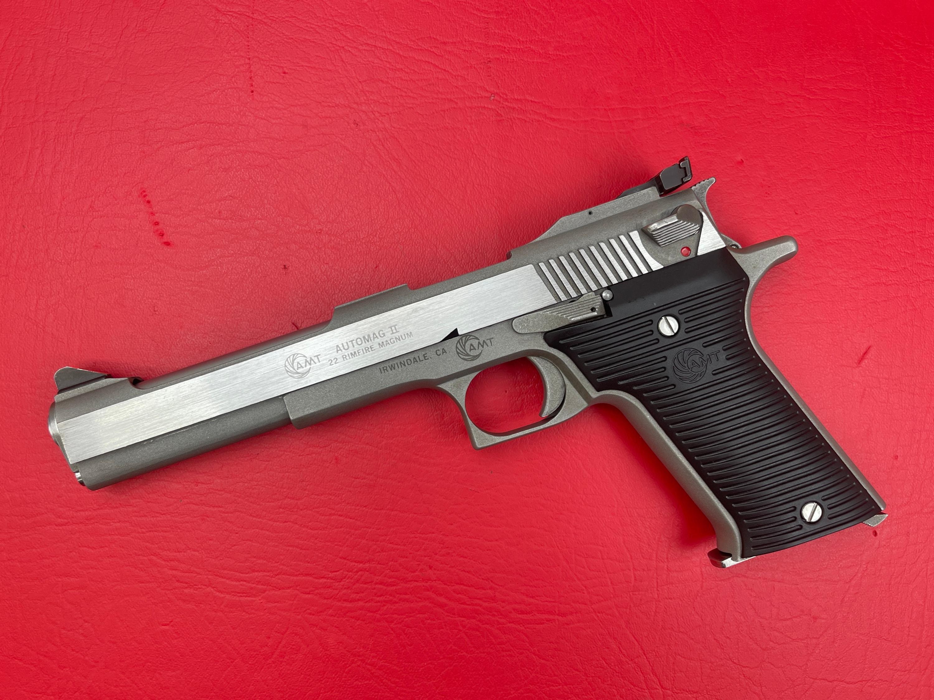 AMT AutoMag II .22 WMR in very good condition. Stainless steel finish shows minimal handling wear. Clean bore and smooth action — a great example of this sought-after semi-auto pistol.