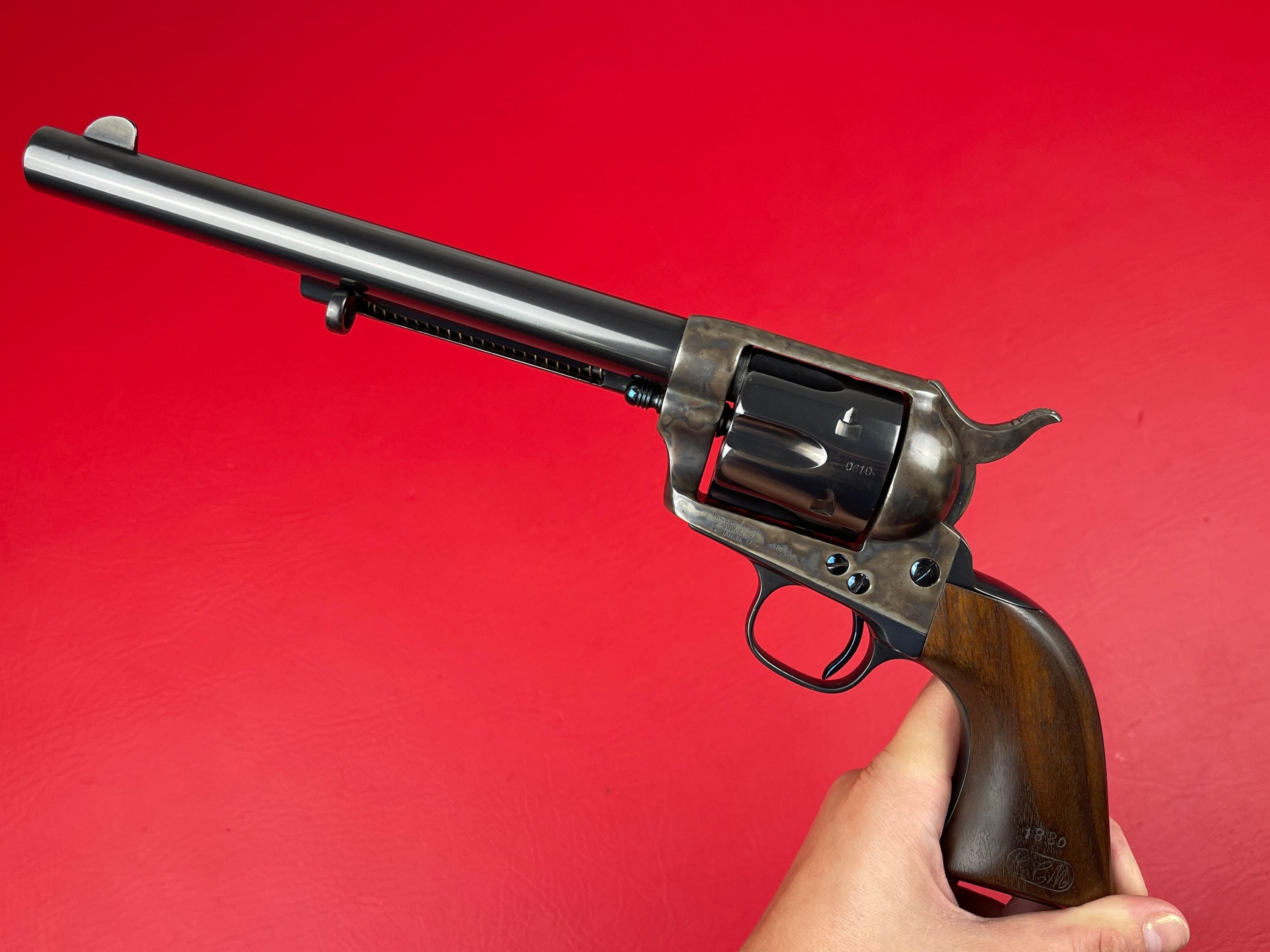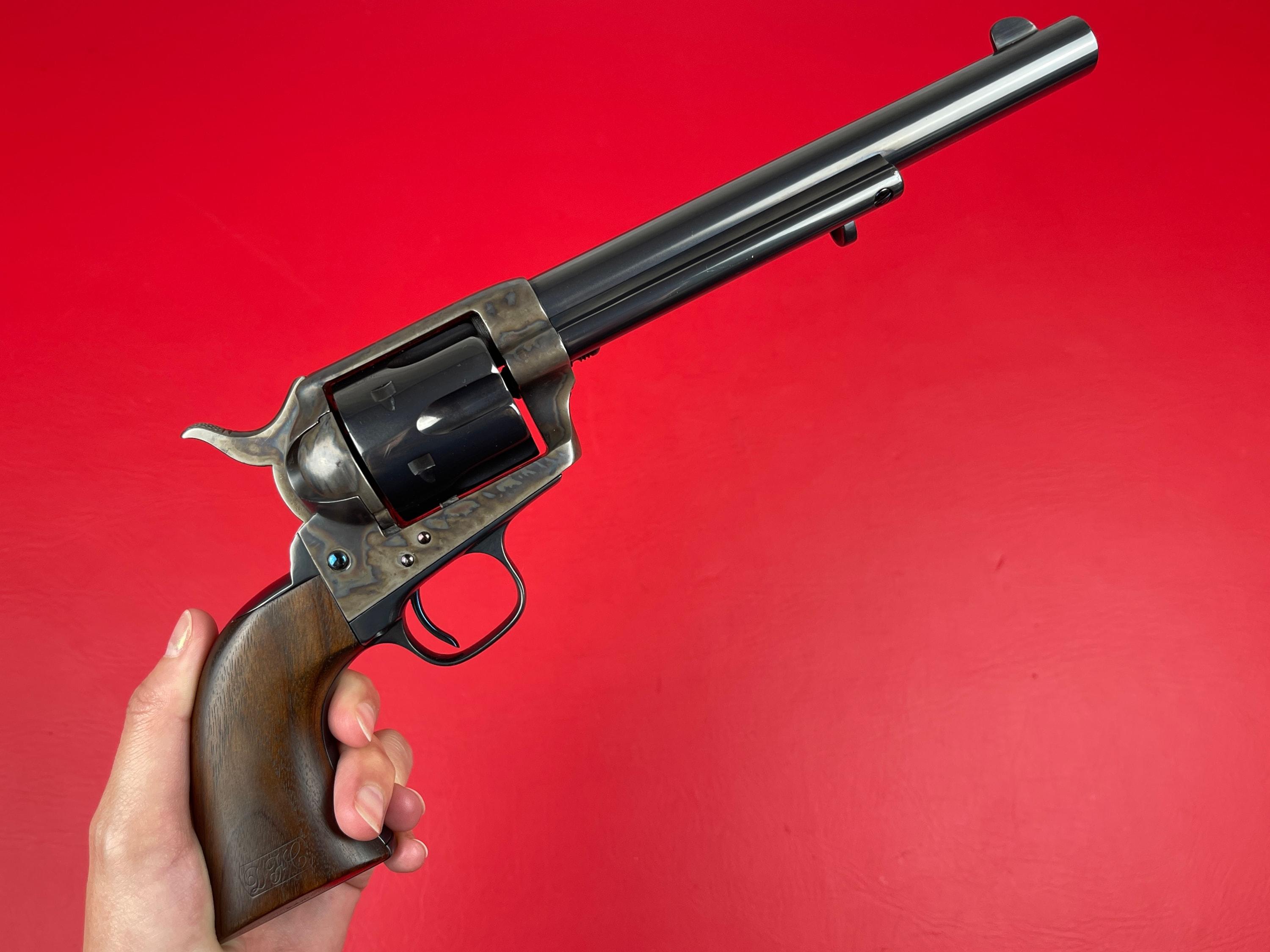 This Colt 1873 Single Action Army was manufactured in 1880 and is a genuine U.S. Artillery Model, DFC inspected. The revolver has been professionally restored and presents in excellent condition. It features a deep blued barrel and cylinder, a beautifully case-hardened receiver, and walnut grips bearing the D.F.C. inspection marks. Mechanically tight with excellent timing and lock-up, this is a striking example of a historic U.S. military Colt SAA.
