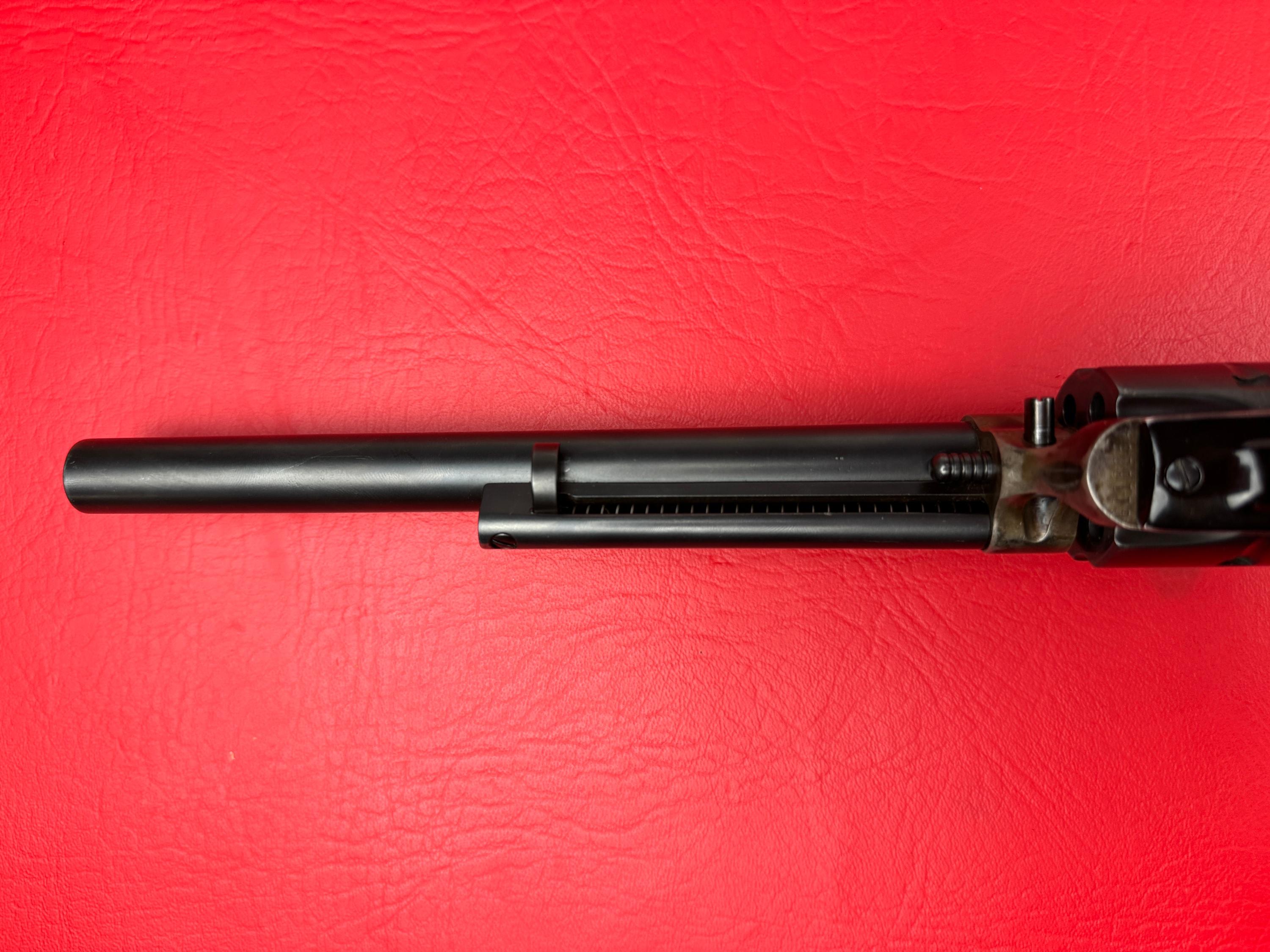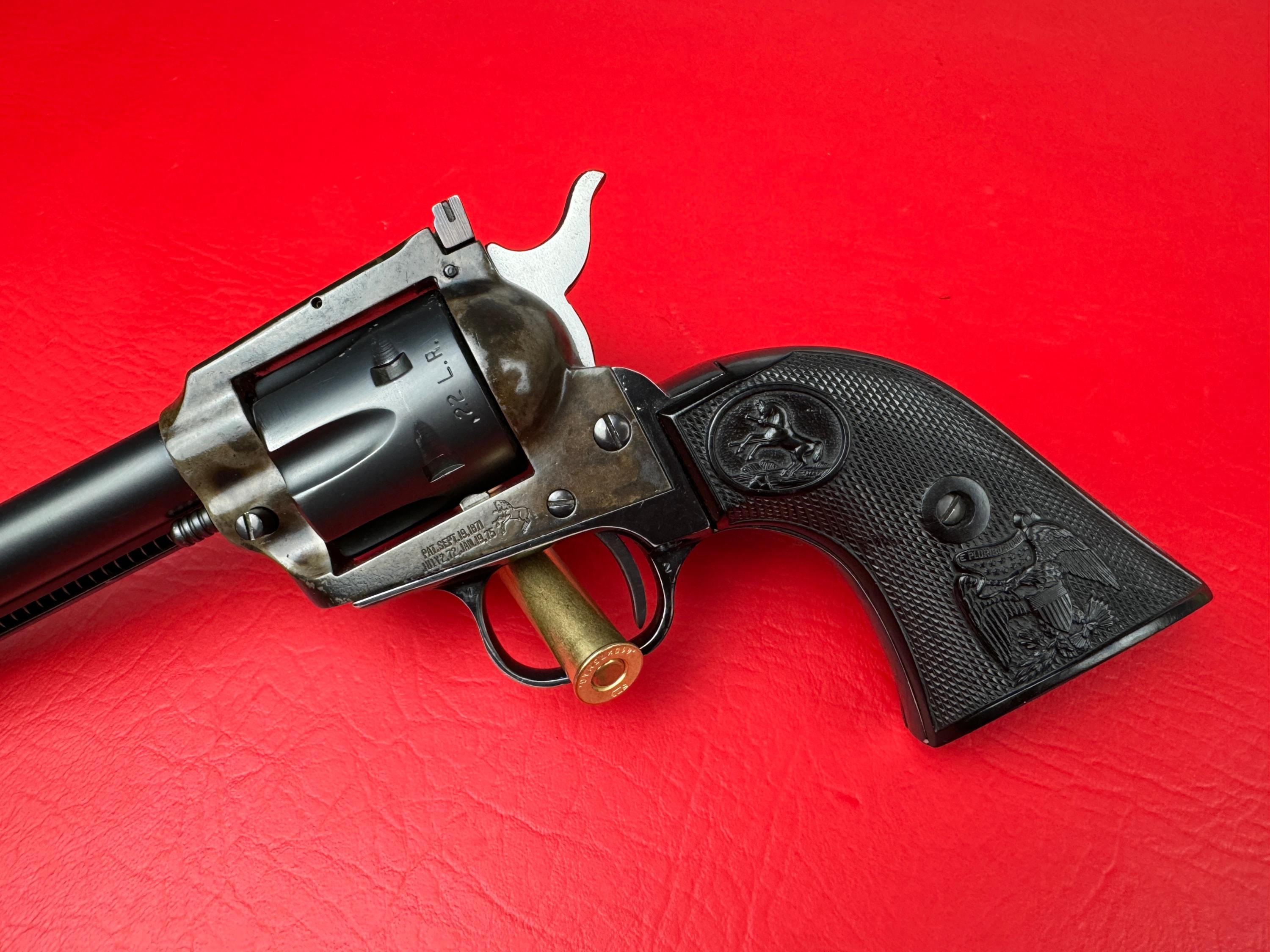 The Colt New Frontier Buntline is a variant of Colt’s Single Action Army revolver series, chambered in .22LR. It is a classic single-action revolver that draws inspiration from the Old West, particularly from the famous “Buntline Special” revolvers.