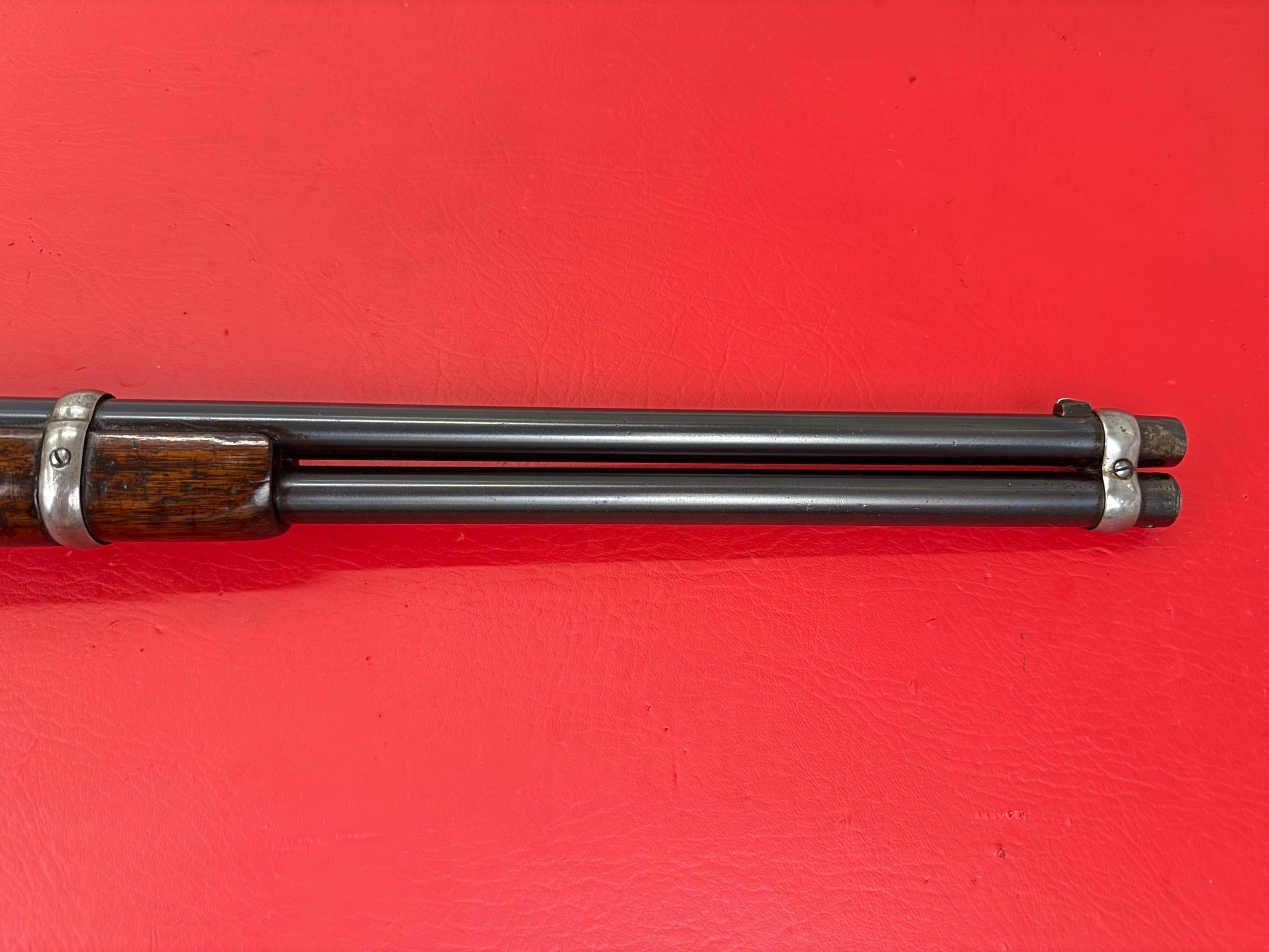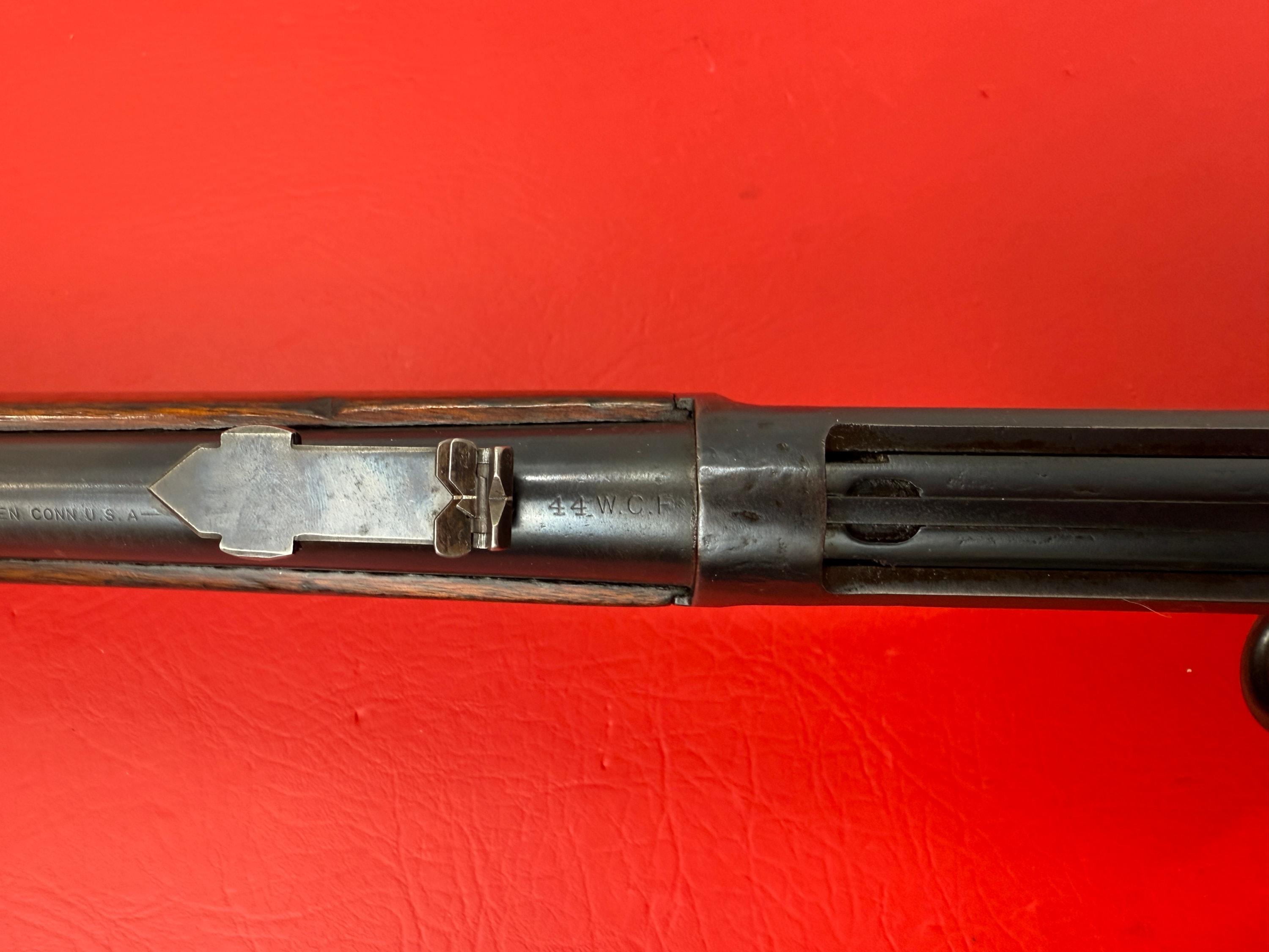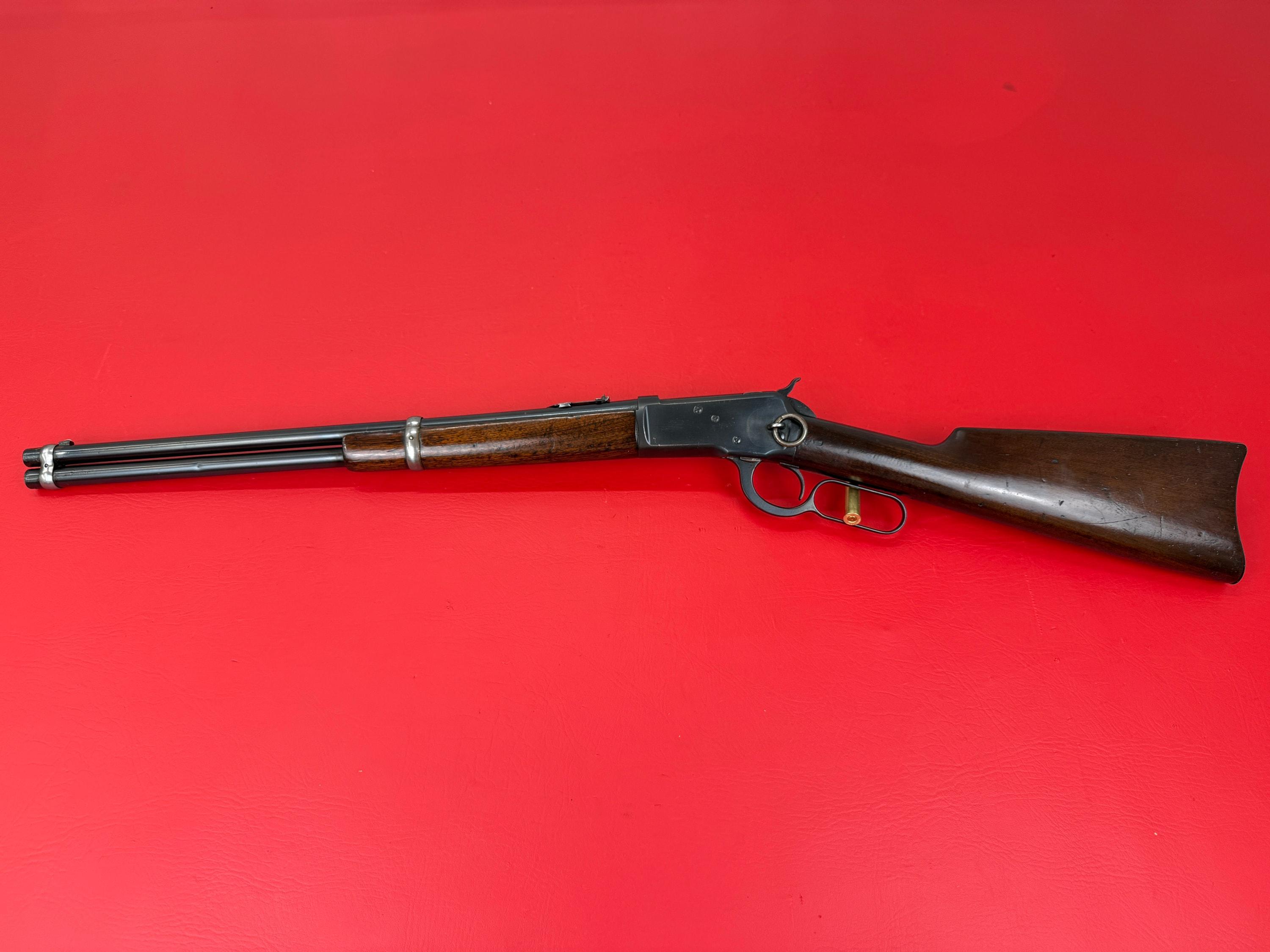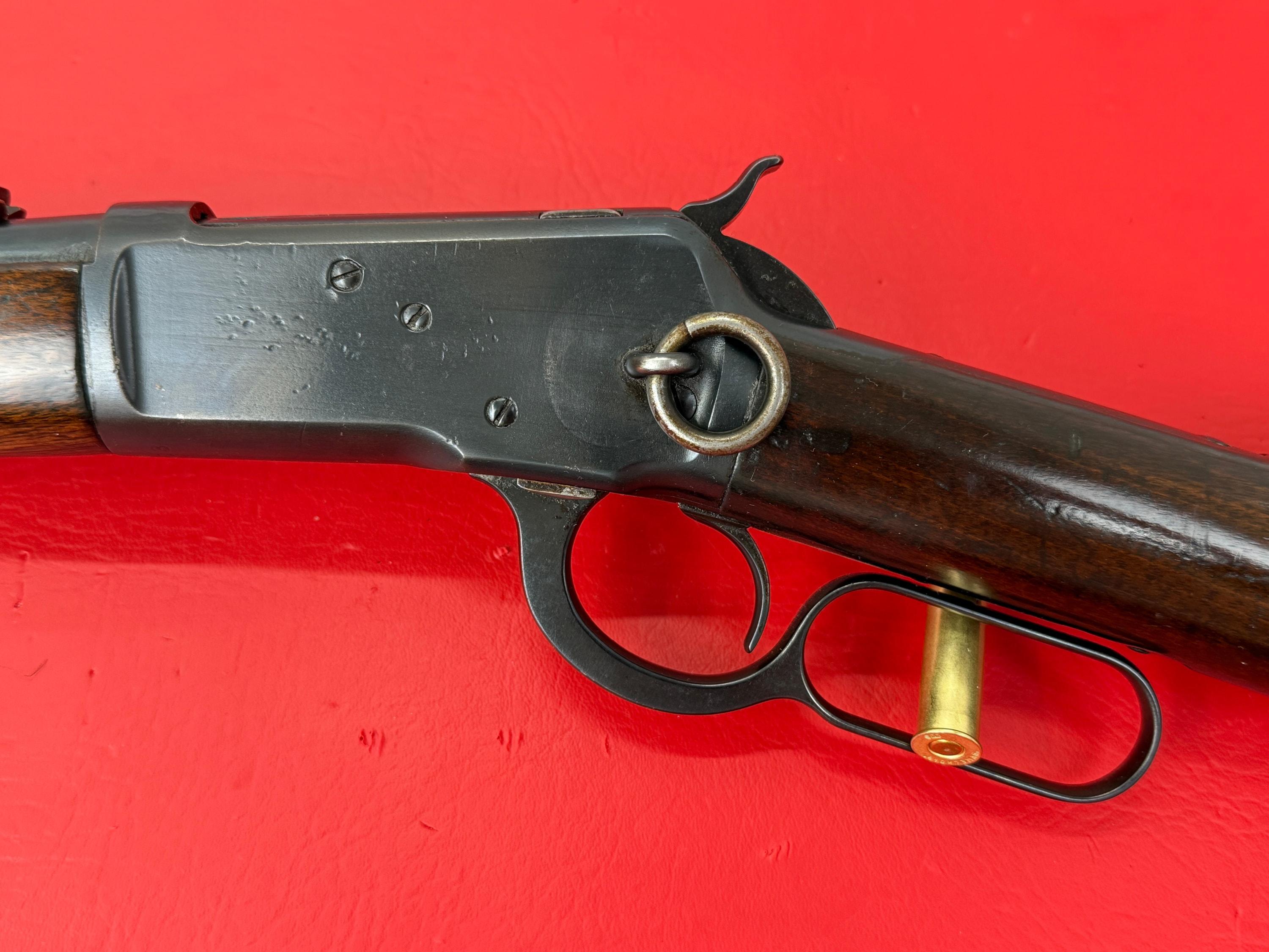 The 1893 Winchester Model 1892 is a 44-40 caliber saddle ring carbine with a 20-inch barrel.
