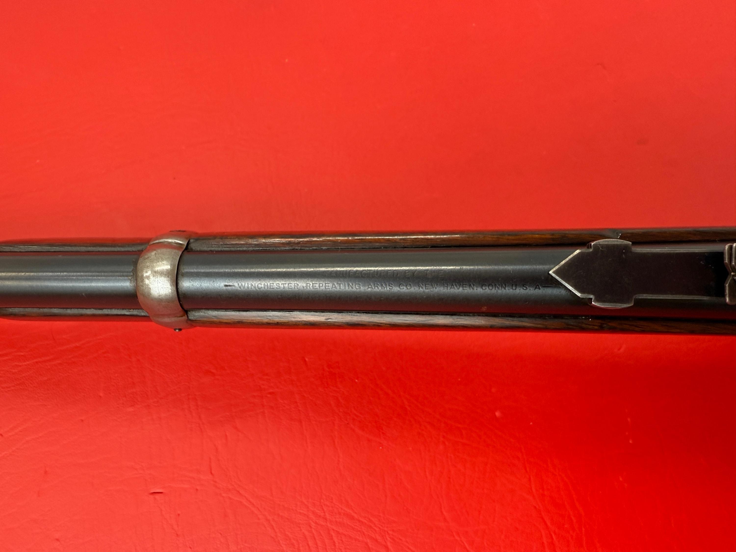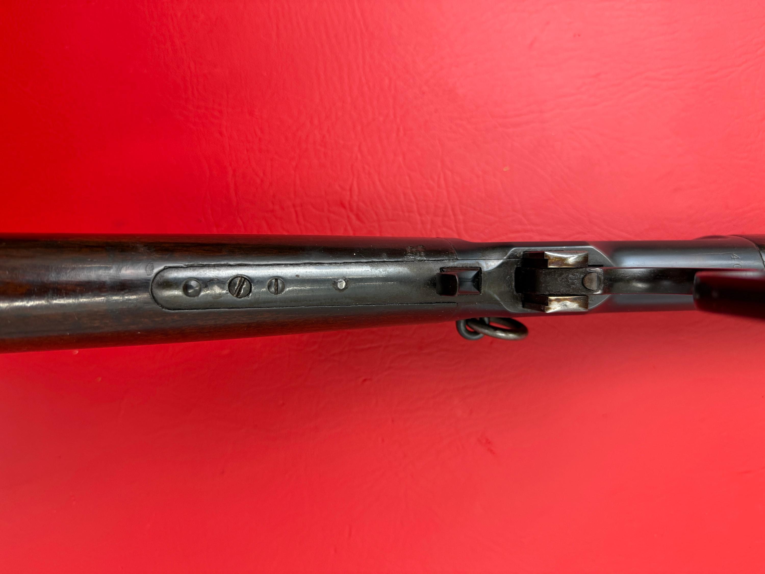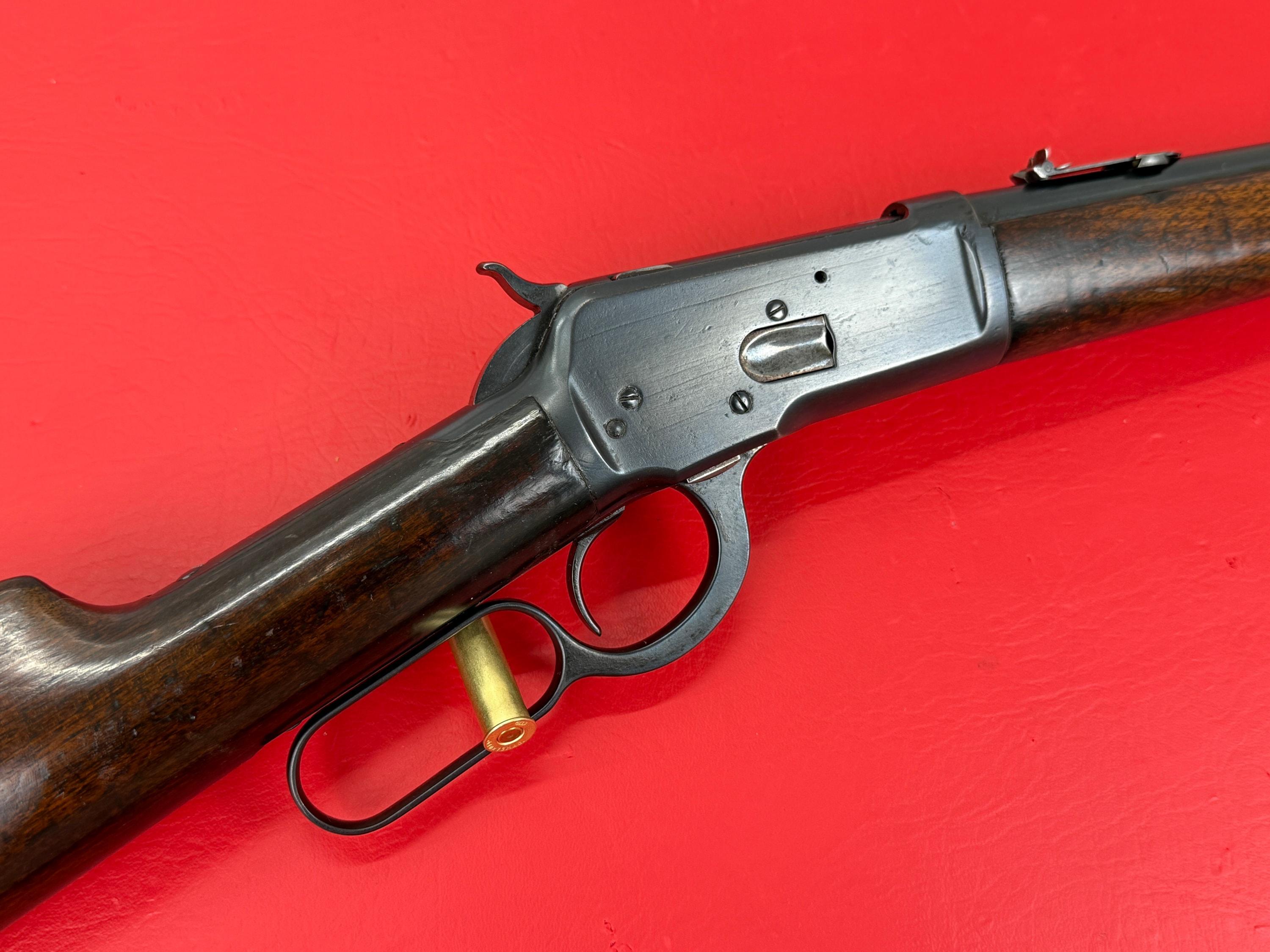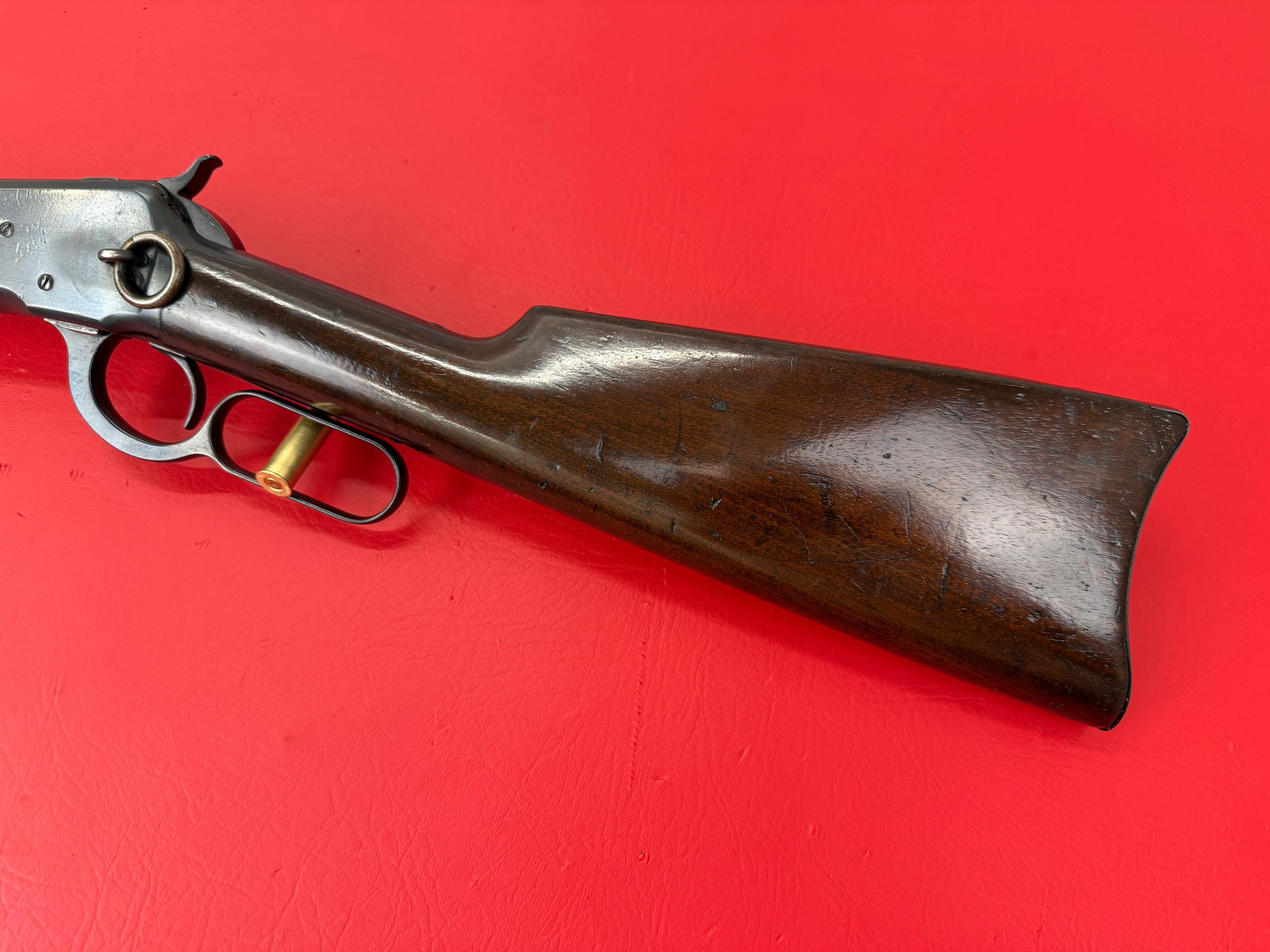 The 1893 Winchester Model 1892 is a 44-40 caliber saddle ring carbine with a 20-inch barrel.