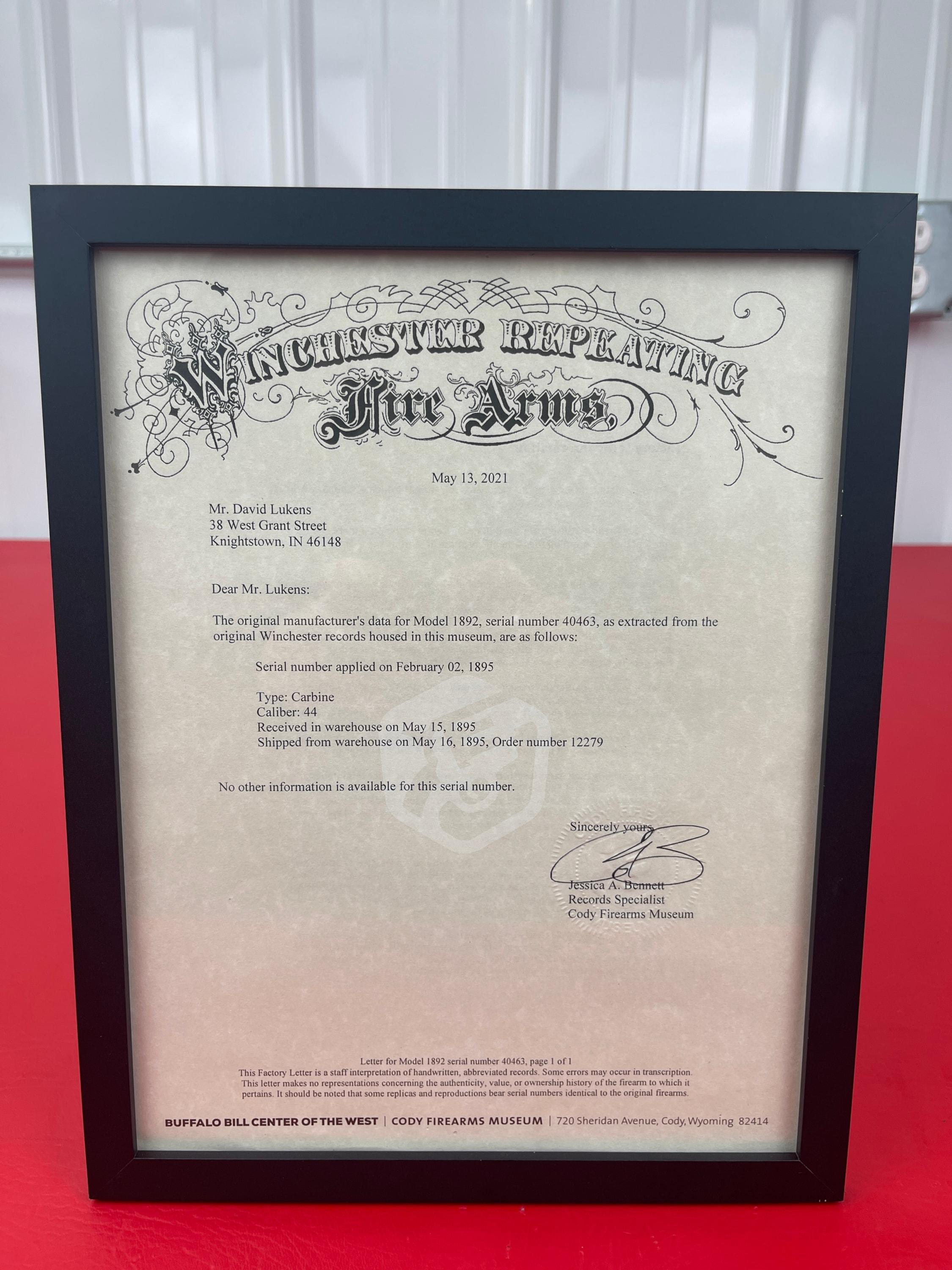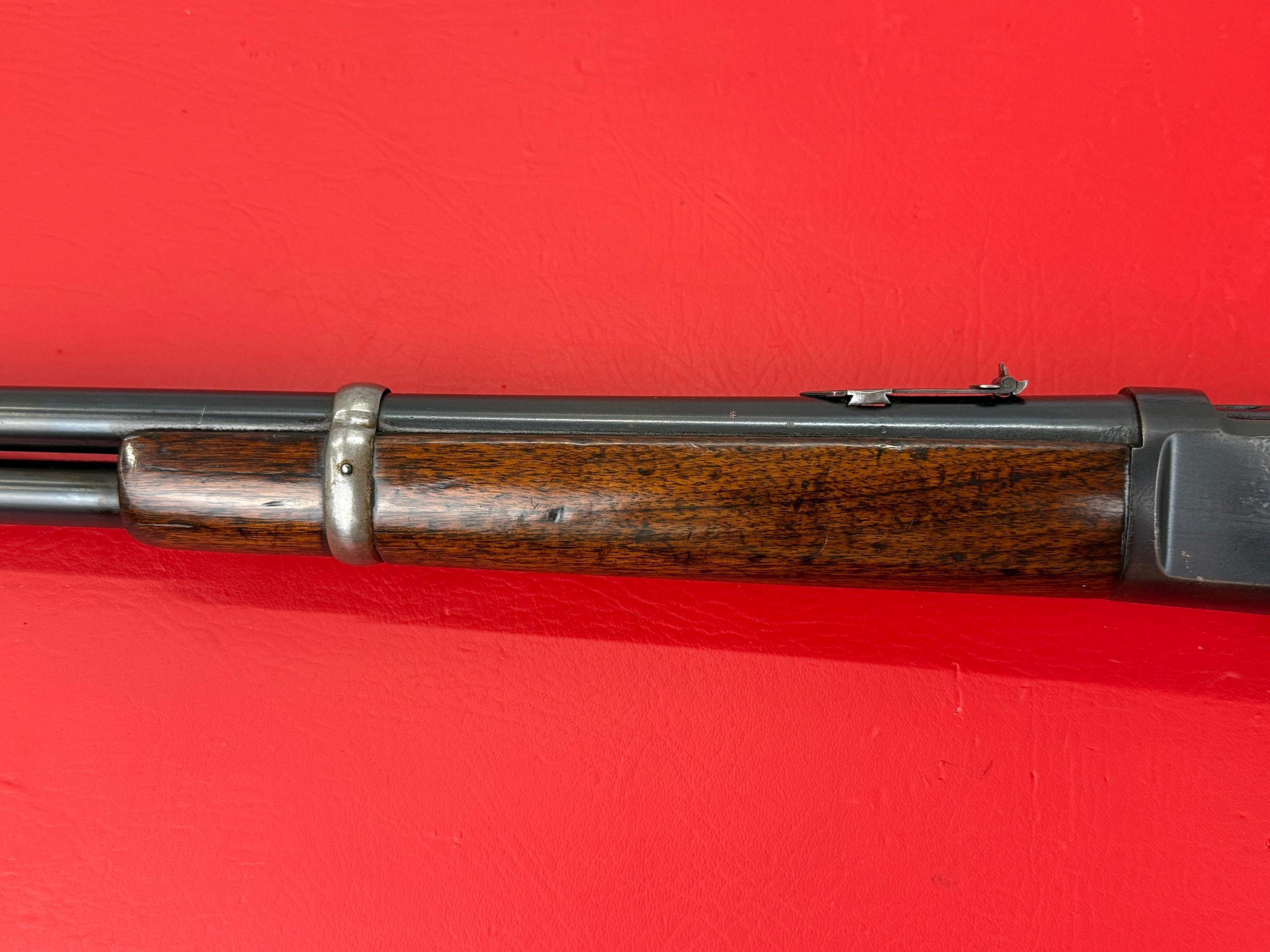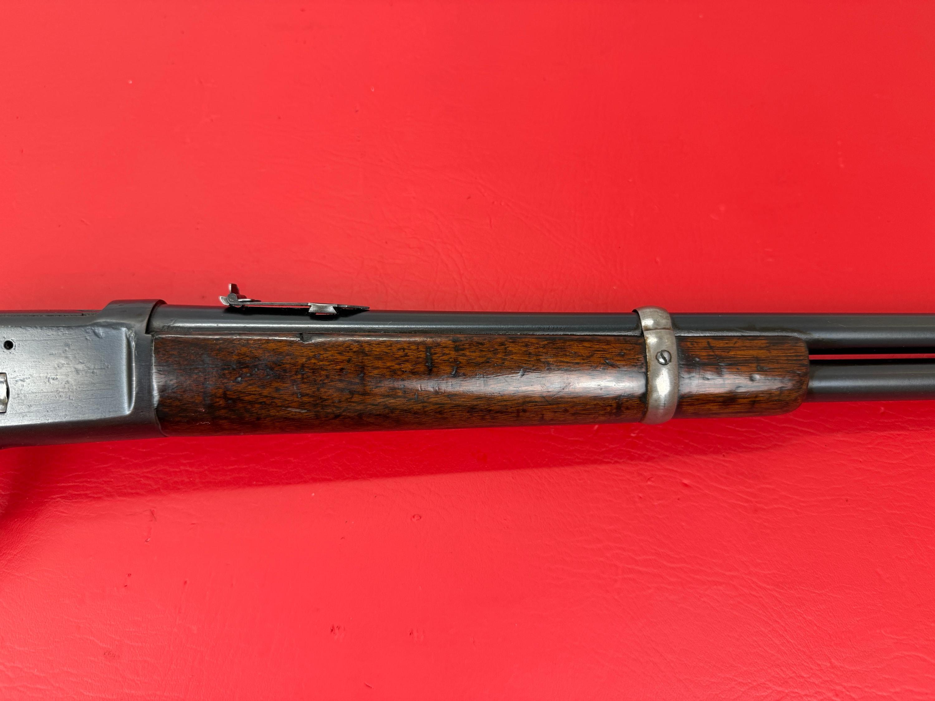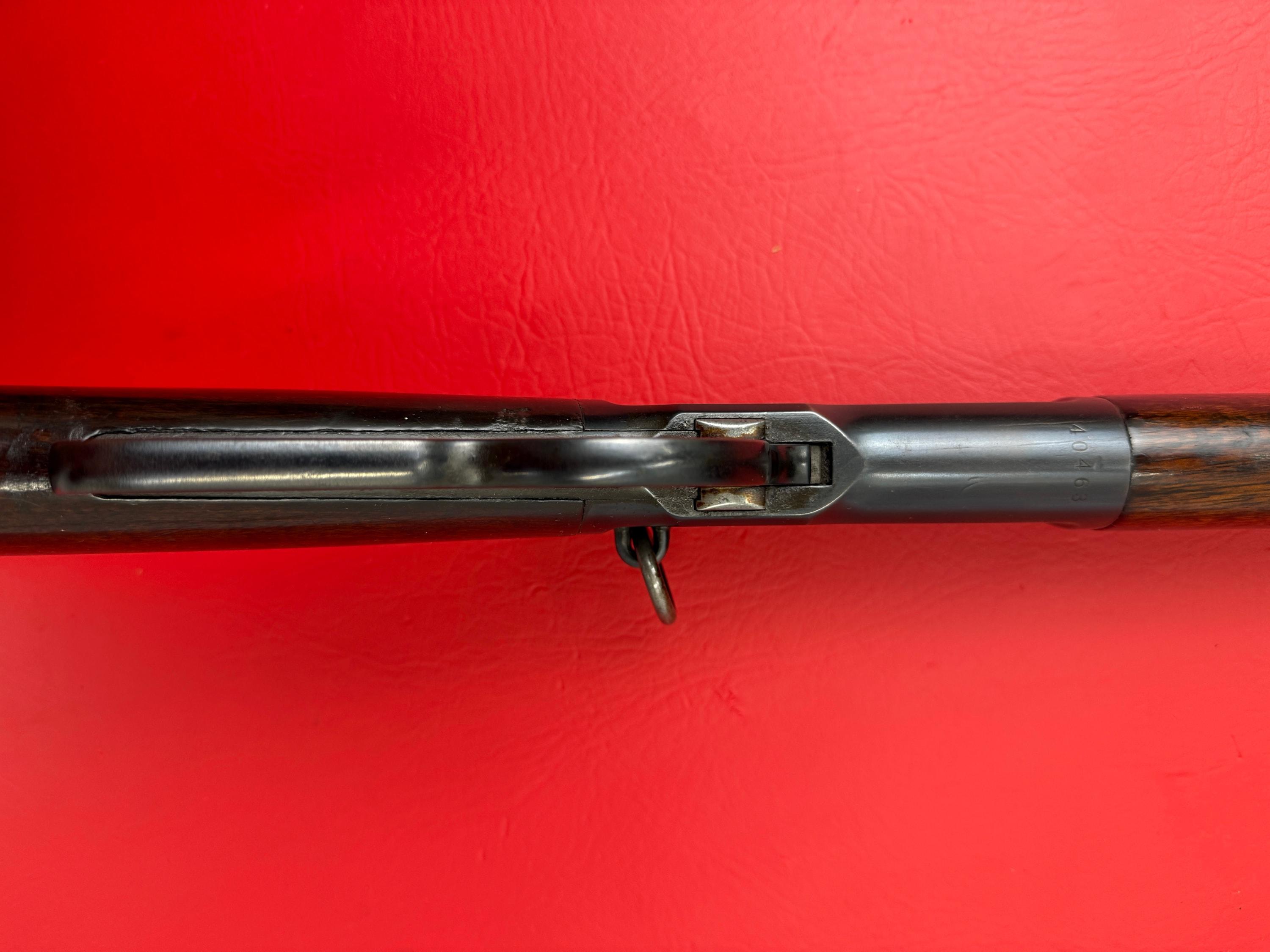 The 1893 Winchester Model 1892 is a 44-40 caliber saddle ring carbine with a 20-inch barrel.