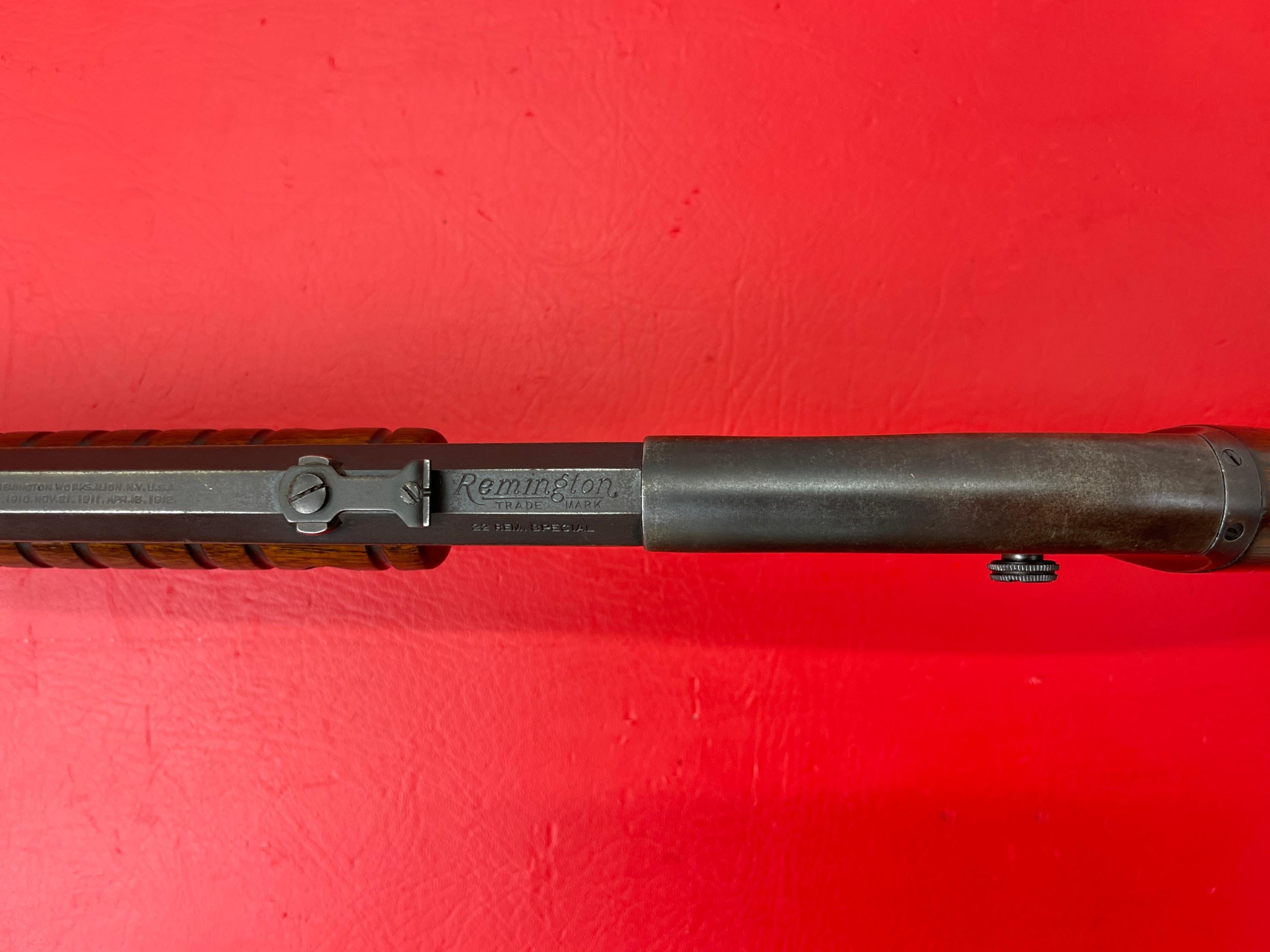 1927 Remington Model 12, .22 Rem Special with a 24-inch octagonal barrel.