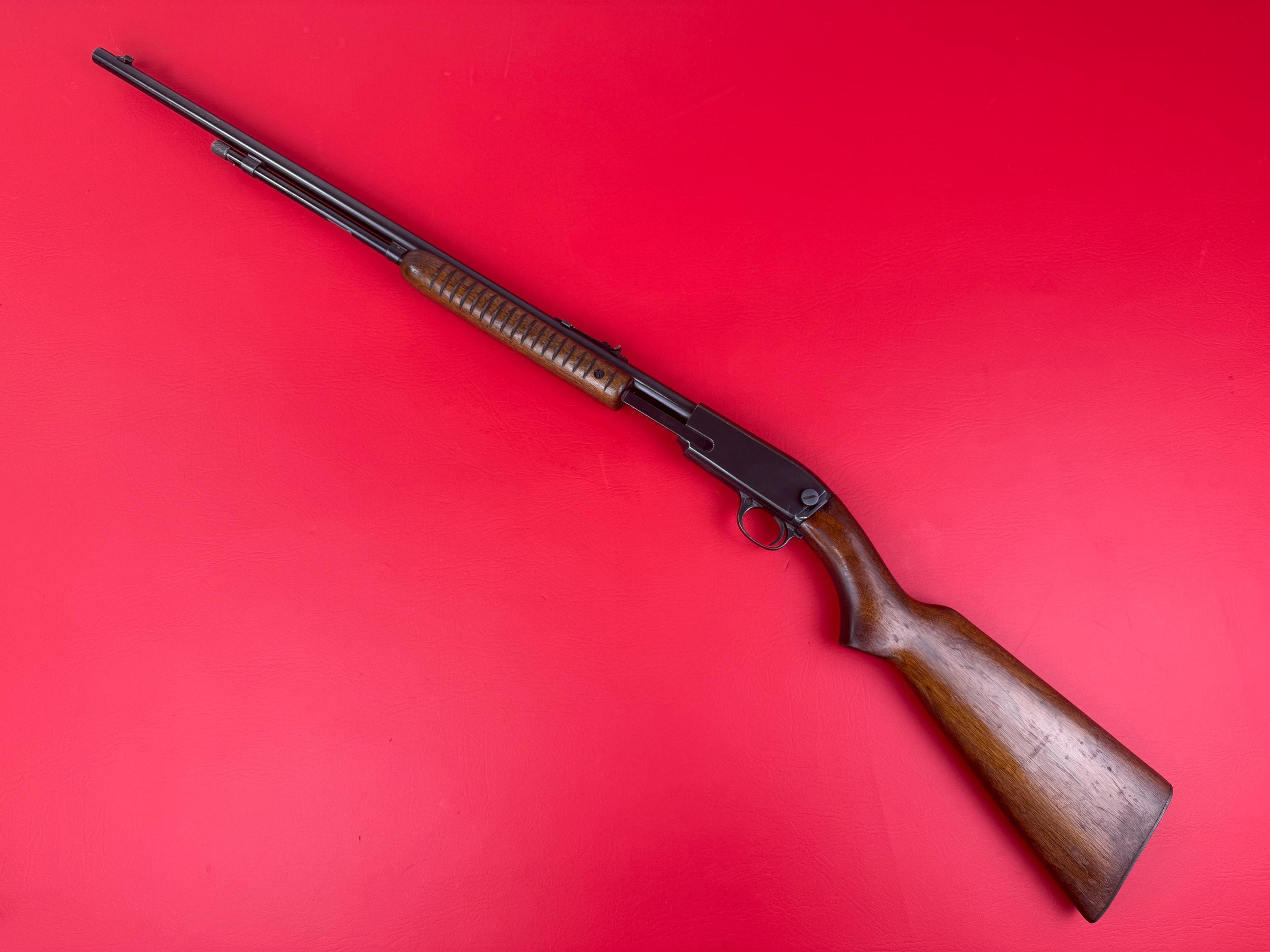 Offered for sale is a classic Winchester Model 61, chambered in .22 Short, Long, and Long Rifle, manufactured in 1957. This iconic pump-action rifle remains in very good condition for its age. The metal retains excellent original finish with only minor wear consistent with use. The stock shows typical handling marks throughout but is free from major cracks or structural issues. Mechanically, the action is smooth, and the bore is clean with strong rifling. A fine example of Winchester craftsmanship, perfect for collectors or small game enthusiasts alike.