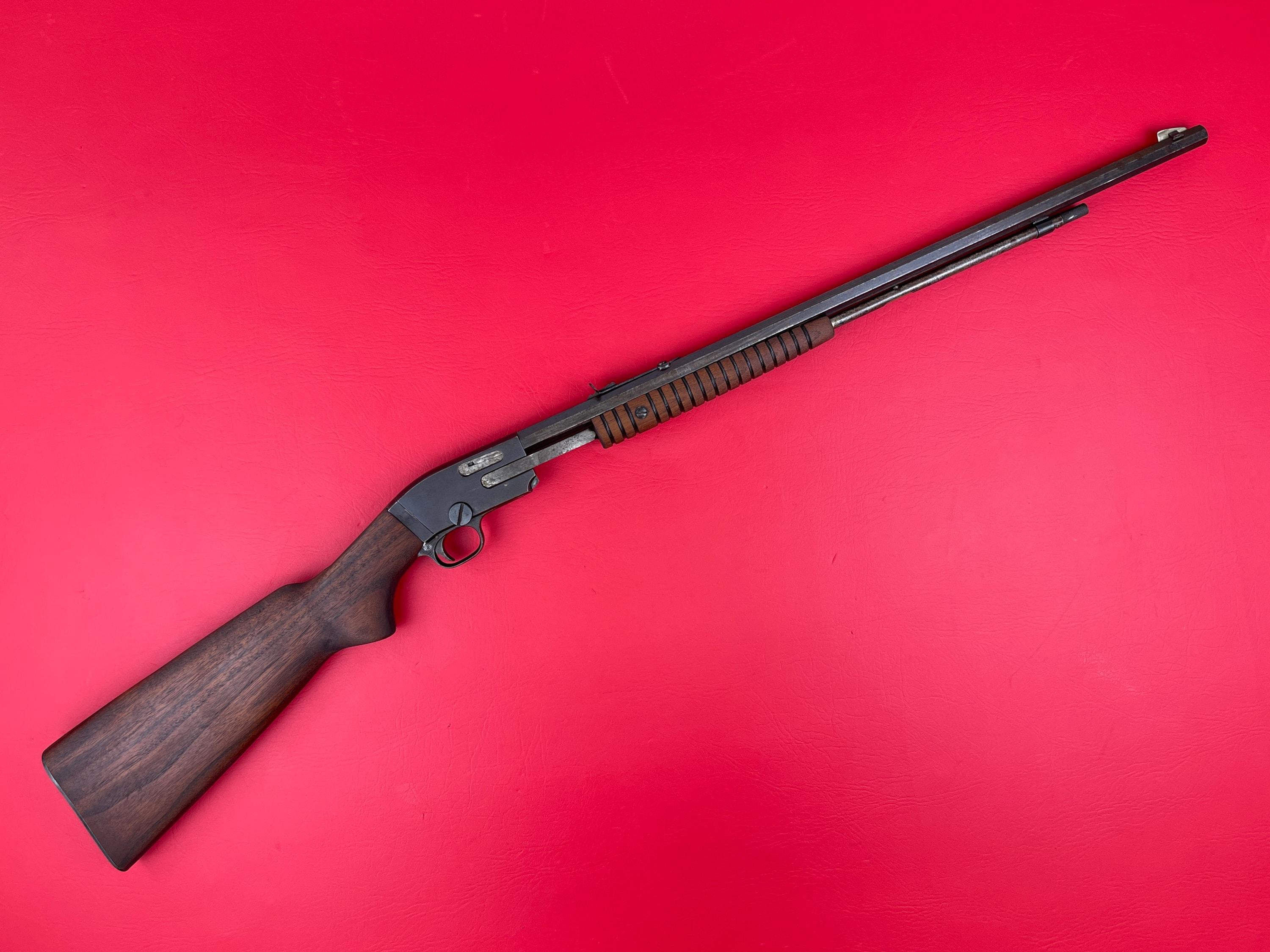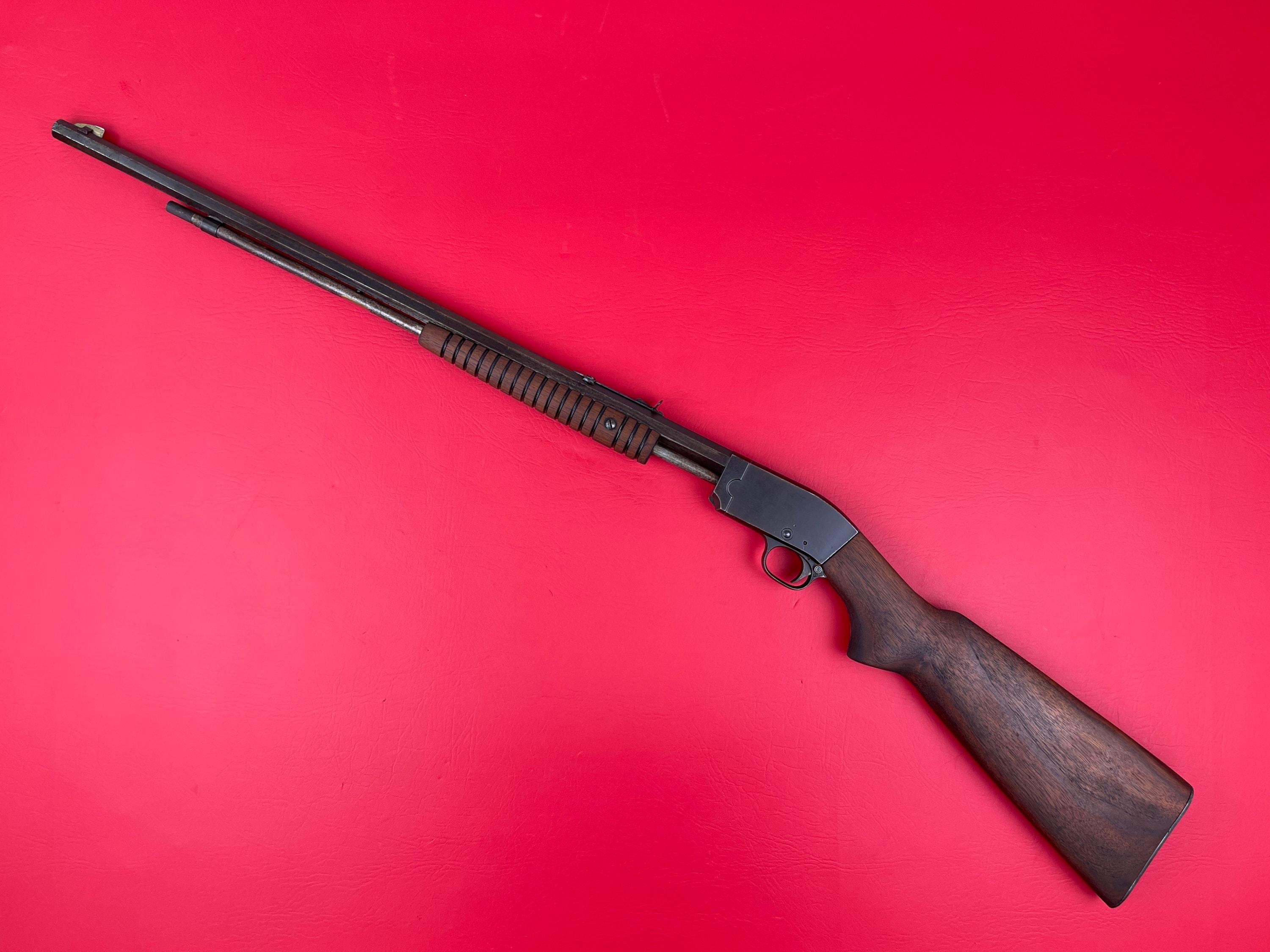 This vintage Savage Model 25 chambered in .22 S/L/LR is in good condition for its age. The stock shows minor handling marks, and the bluing remains mostly intact with some wear throughout. There is some pitting at the front of the barrel (see photos). Bore is clean, and the rifle functions exactly as it should.