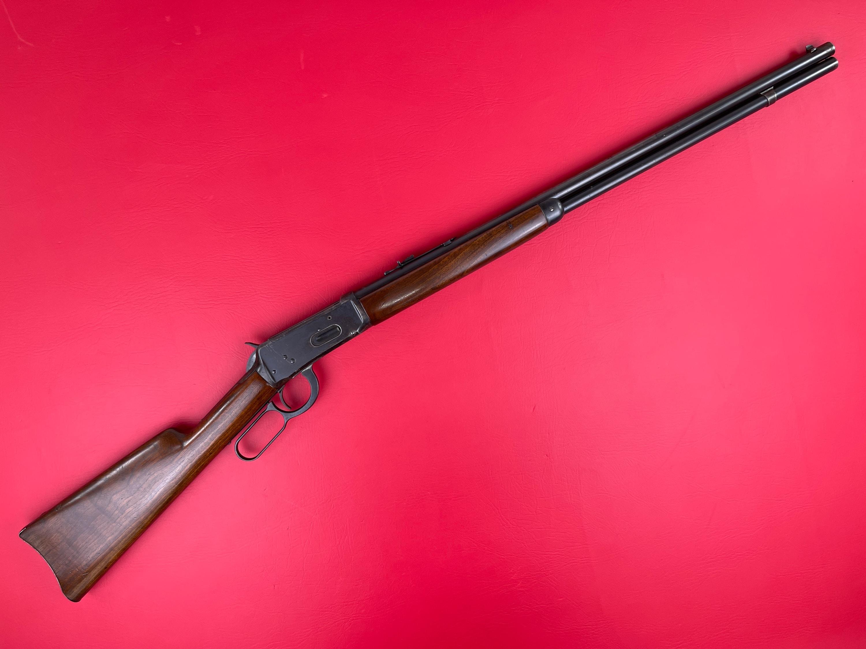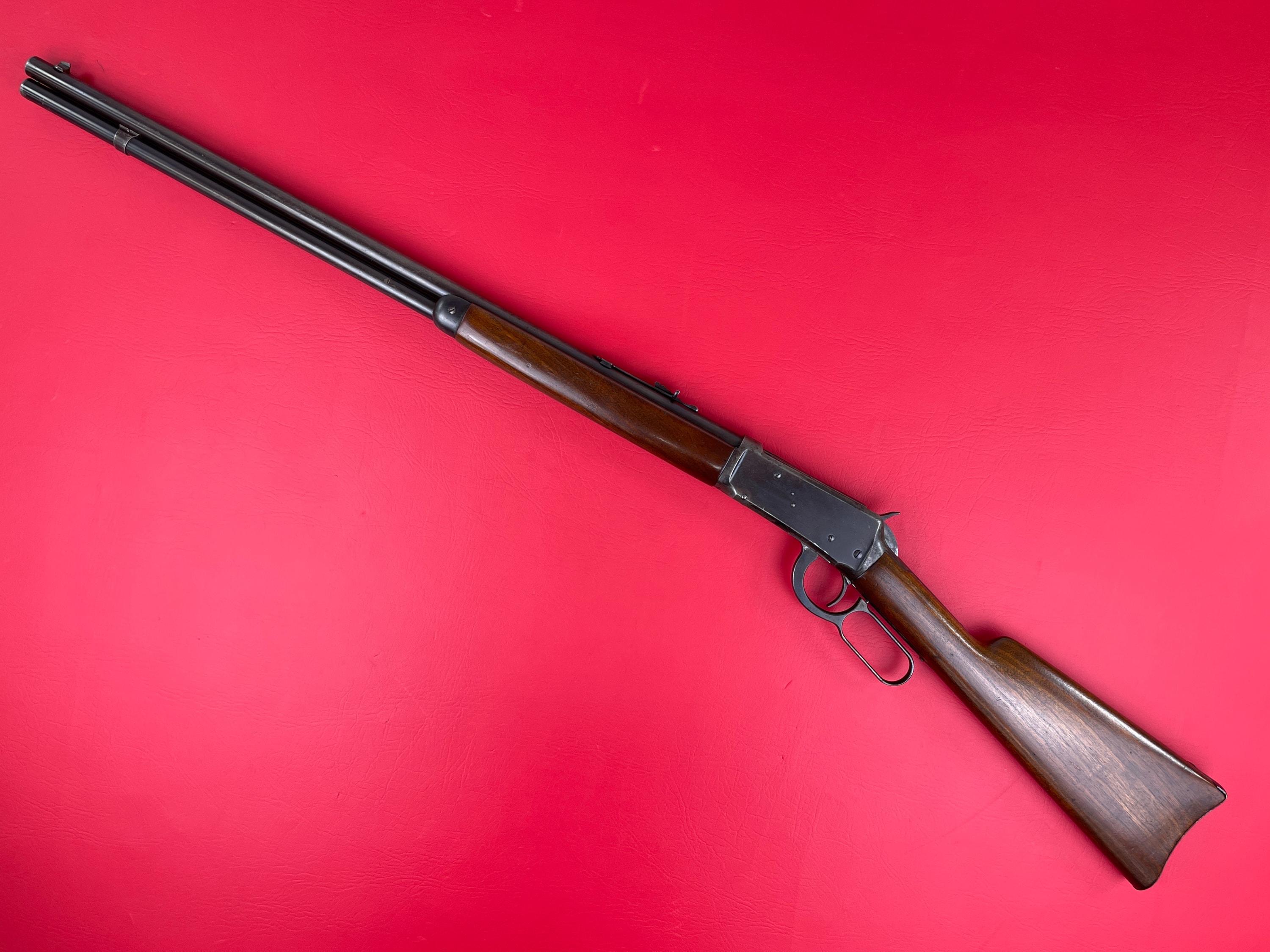 Here we have a Winchester Model 1894, manufactured in 1904 and chambered in .38-55 Winchester. Featuring a 26 inch barrel, this classic lever action rifle retains strong rifling in a clean bore, ensuring good shooting potential. The rifles overall condition is very good, showing honest wear consistent with its age. The barrel and receiver exhibit a worn finish with some light pitting throughout, adding to its vintage character. The walnut stock has handling marks throughout but remains solid and in good shape. This is a great collector's piece and a fine representation of an early-production Winchester 1894.