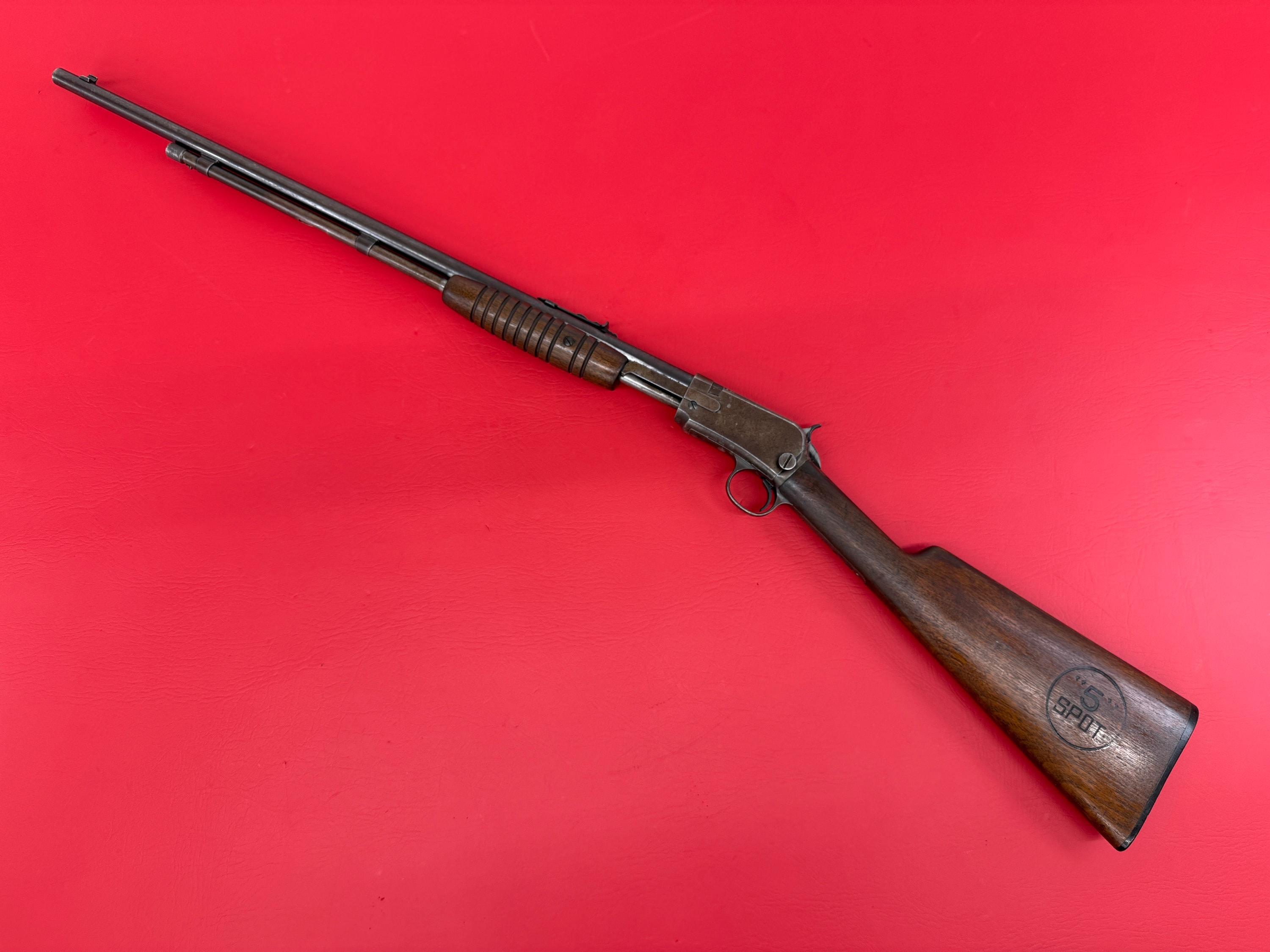 The Winchester Pre War Model 62 "5 Spot" is a rare and collectible variant of the classic pump-action .22 caliber rifle. They were used out of a large shooting gallery in Michigan.