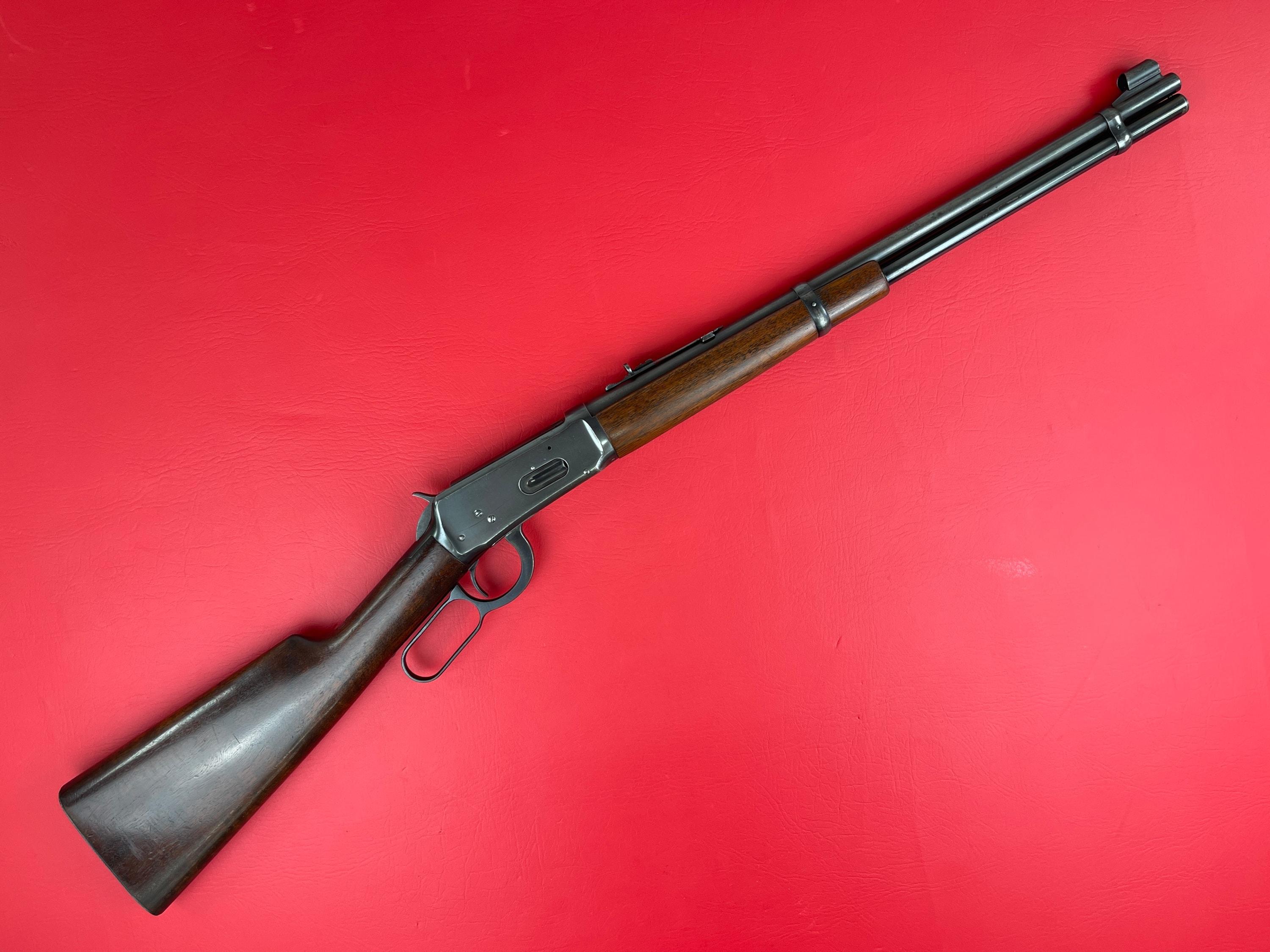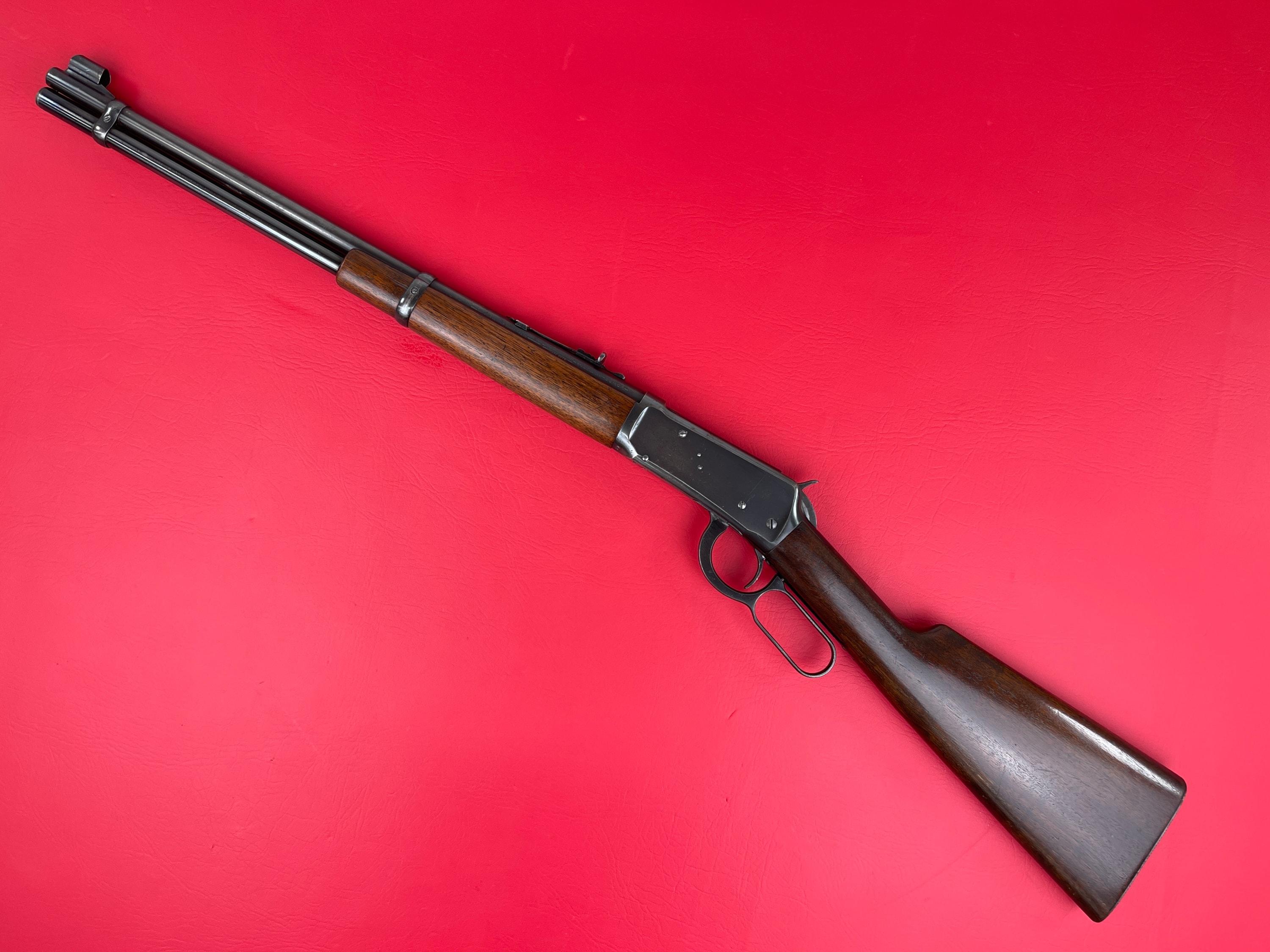 This is a classic Winchester Model 94, chambered in .30 WCF and manufactured in 1945. The rifle retains its original blued finish, showing some scratches and handling marks consistent with its age but remains in very good overall condition. The wood stock and forend exhibit some handling marks throughout, but they are solid and well preserved. Mechanically, this rifle is excellent, featuring a smooth action, a clean bore, and strong rifling, making it both a great shooter and a fine collectible!